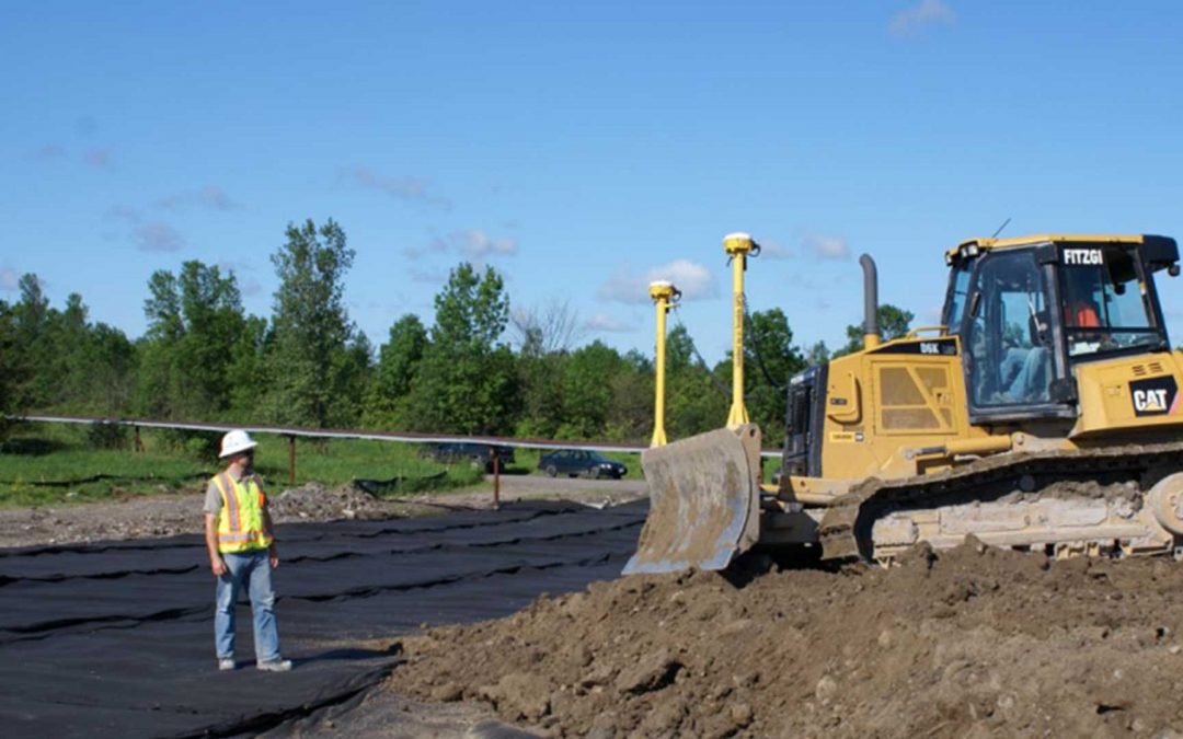 Taken together, the three layers measure approximately a half-inch thick. The fill soil is spread on top. “The dozer with the Trimble GCS900 was used to ensure that the amount of fill used in the capping layer is accurate,” Stanton says. “There is a bit of a balancing act, because we don’t want to consume more than what we’ve stockpiled. We don’t want to waste the material, which is wasting money. Using Trimble meant that we did not waste money.”