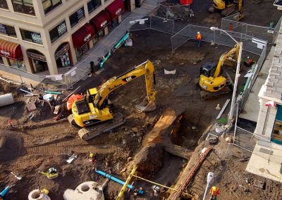 The work included complete reconstruction from building face to building face. The first major reconstruction project to be completed without public outcry. The Big Dig 1 project won awards and accolades for the management of pedestrians, minimization of disruptions to local merchants and communication initiatives. This project was completed on-time and within budget despite significant post-tender additions to the scope of work.