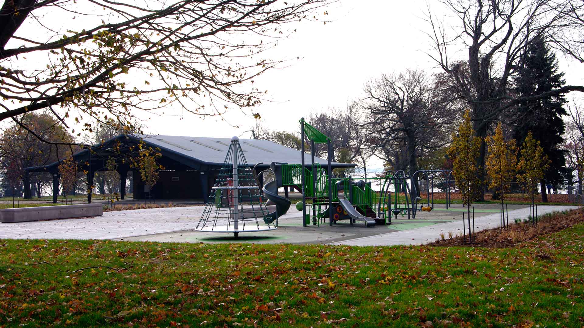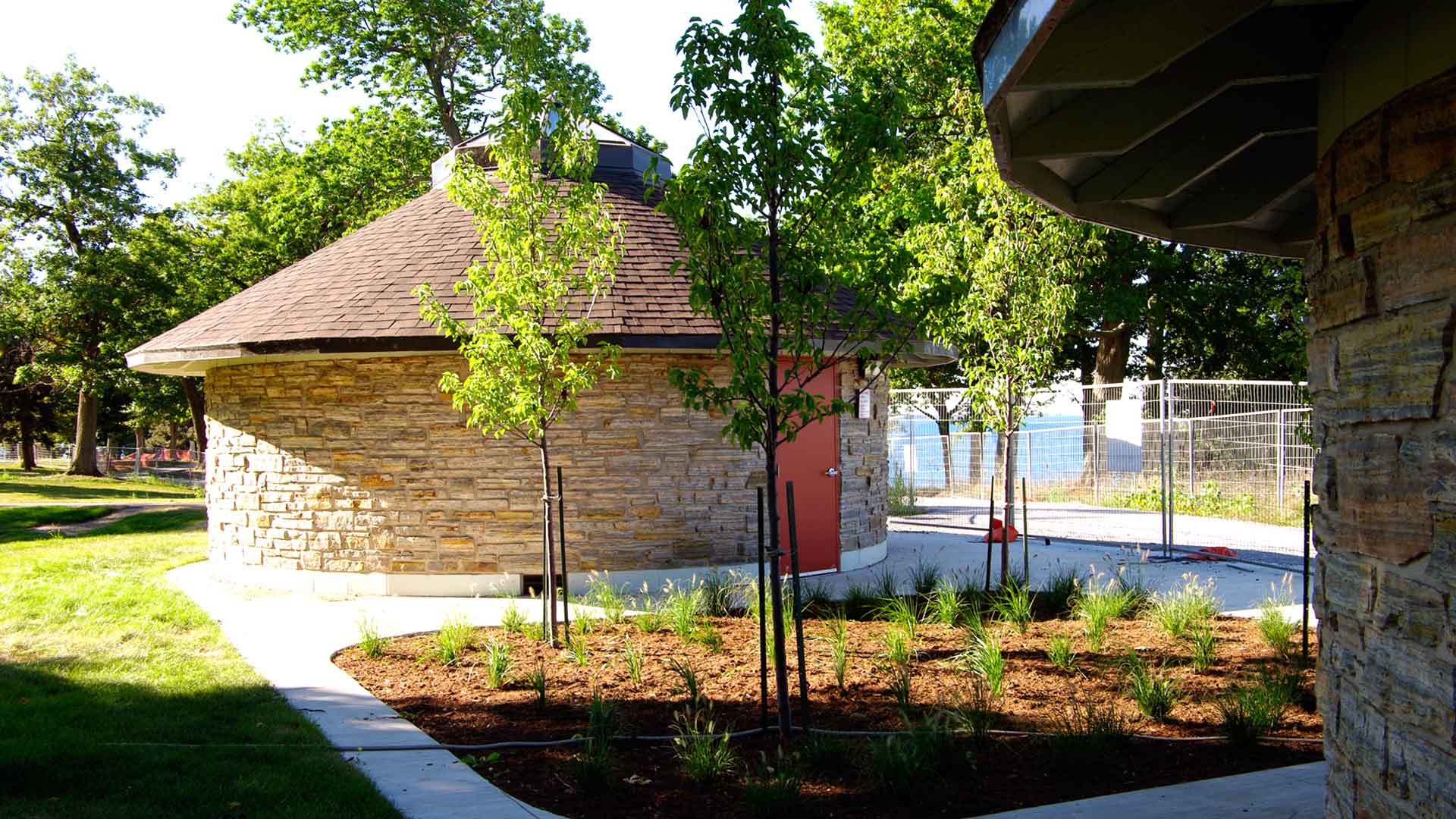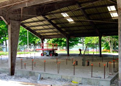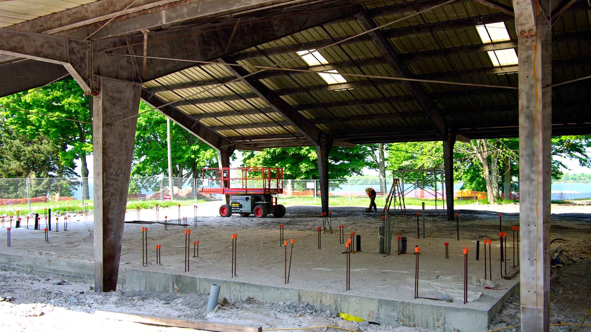 The work included extensive demolition and removal of existing park features. Partial demolition of the existing “Longhouse” that would become the new Pavilion structure with an entirely new washroom building incorporated inside the existing footprint. As well, renovation/upgrading of the existing “Round” washroom buildings occurred to maintain the historic park features. An entirely new building to house maintenance equipment and staff was also constructed. Existing underground services (water, sanitary, electrical) were upgraded to increase capacity. New storm sewers were installed to control storm water run-off and onsite filtration was created prior to outlet to Lake Ontario.