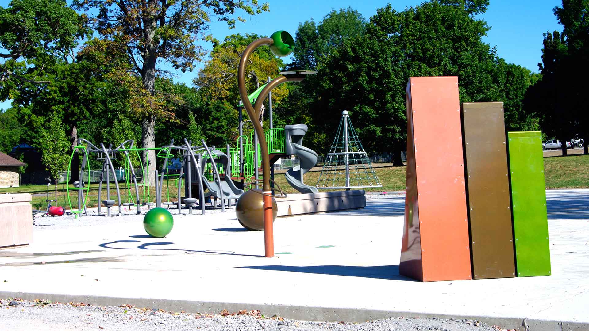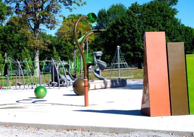 A splashpad, a new playground structure and two sand volleyball courts were added to enhance play value for young and old alike.